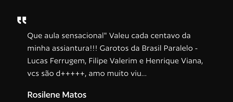 Não perca tempo e aproveite todos os benefícios dos membros-assinantes da BP - os cursos do Núcleo de Formação da Brasil Paralelo já foram aprovados pelos milhares de alunos.