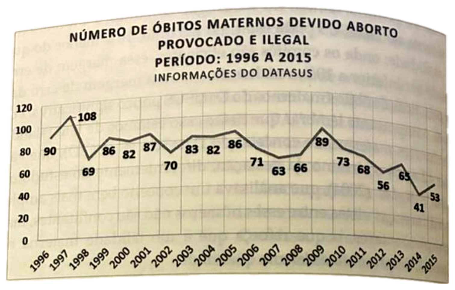 Entre 1996 e 2015, o DataSUS registrou uma queda contínua nas mortes de mulheres por aborto clandestino. Em 1997, foram 108 casos; em 2015, 53.