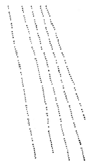 O poeta francês Guillaume Apollinaire (1880-1918) criou, em 1914, o famoso poema visual Chove (Il pleut, no original), no qual a disposição das palavras remete ao movimento das gotas d'água caindo.