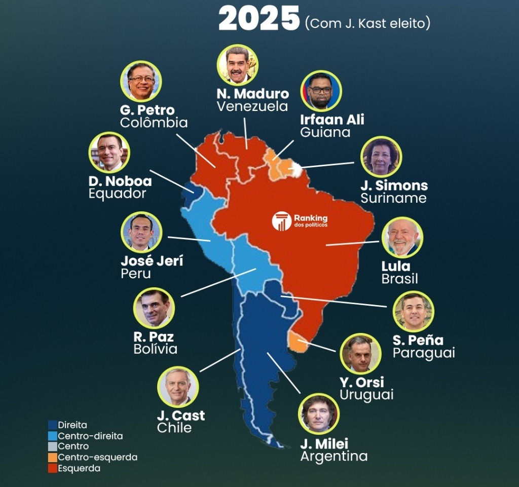O Paraguai já não fazia parte do grupo de países governados pela direita há bastante tempo. O Equador mudou em 2021, a Argentina em 2023, e 2025 marcou a virada do Peru e da Bolívia e agora o Chile entra nesse novo capítulo.
