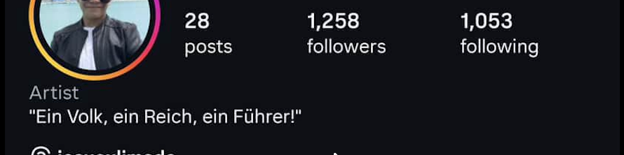 Além disso, prints que seriam da rede social do adolescente mostram a frase “Uma nação, um império, um líder!" na sessão de biografia, escrita em alemão.