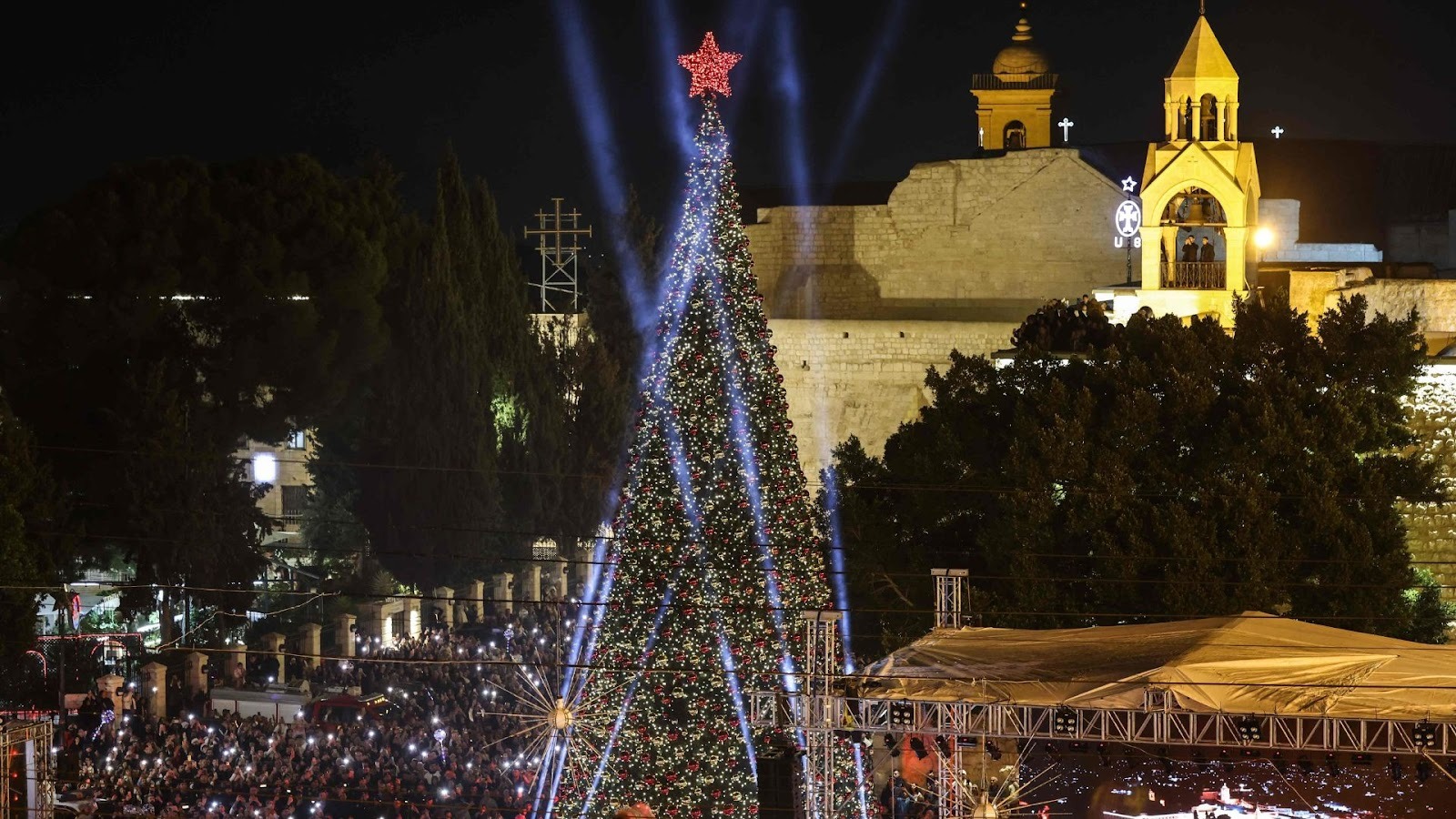 Na véspera de Natal, a Praça da Manjedoura reuniu dezenas de cristãos. A celebração aconteceu em frente à Basílica da Natividade, construída sobre a gruta onde Jesus nasceu, segundo a tradição.