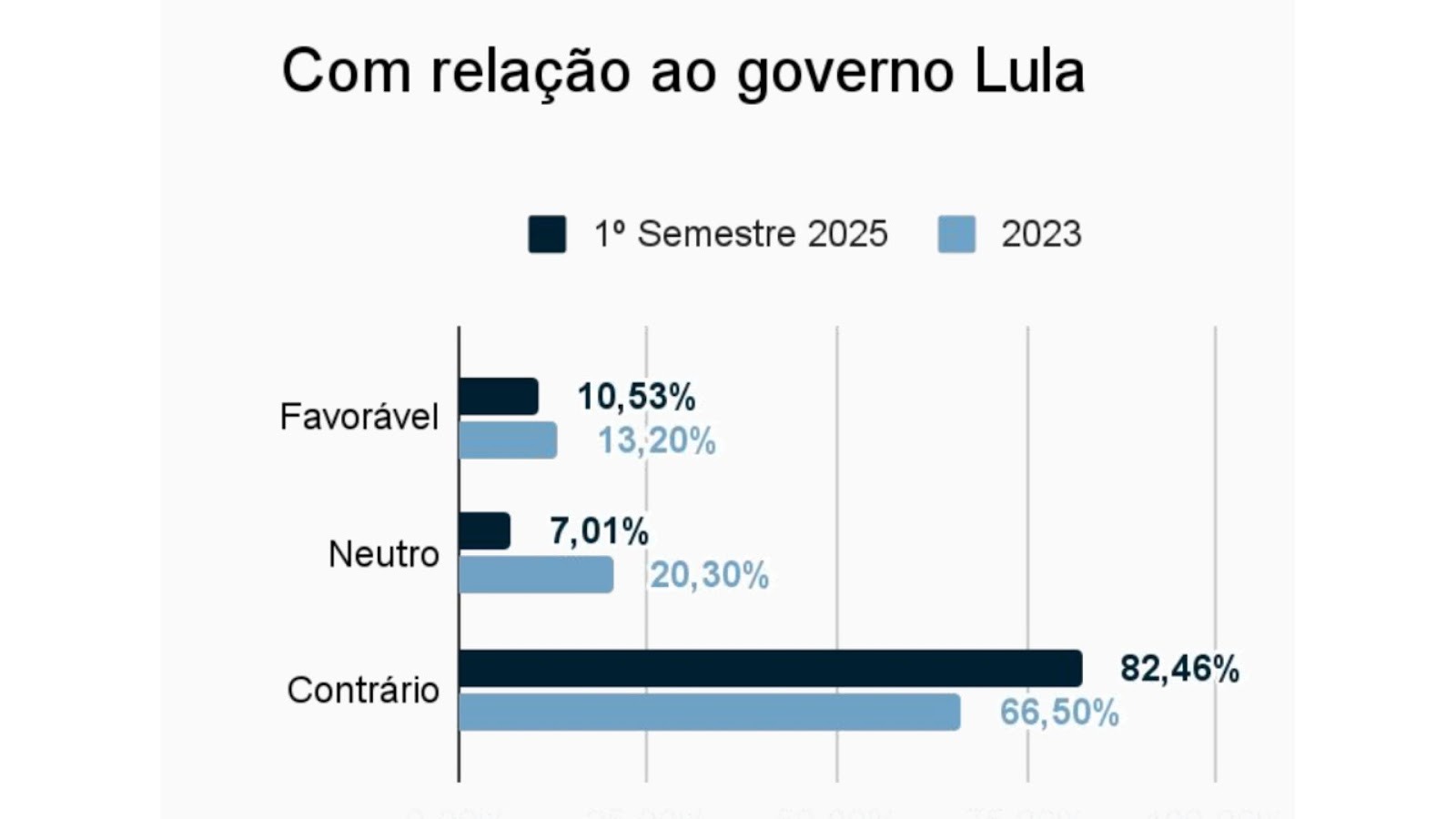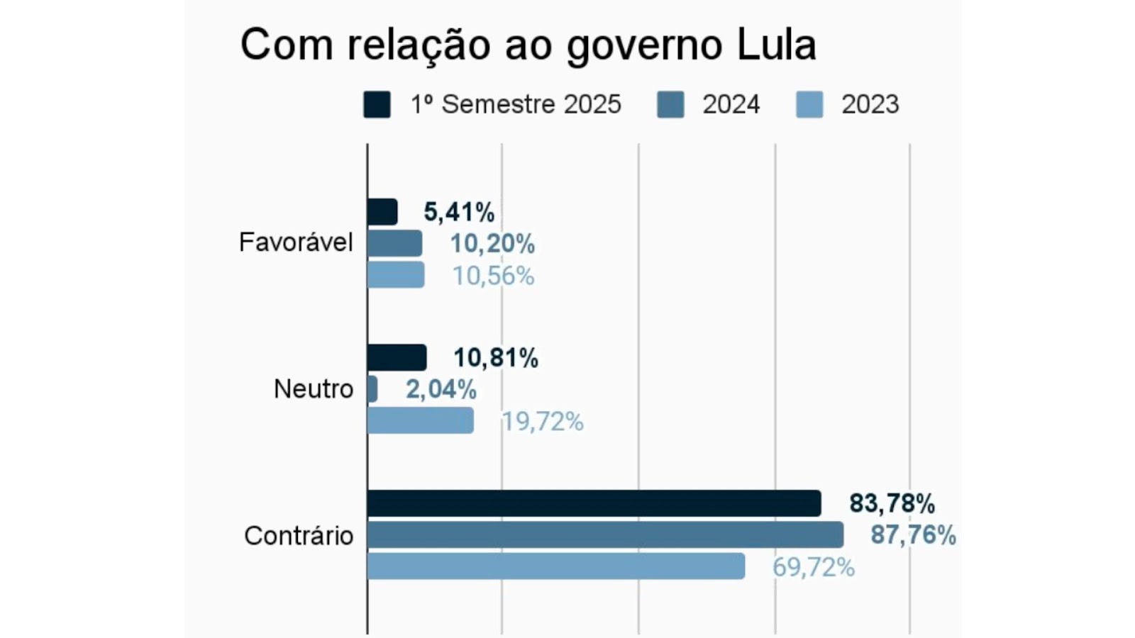 Em 2023, apenas 66,5% dos editoriais apresentavam uma visão contrária às medidas do governo, em comparação com 2025, quando o valor chegou a 82,46%.