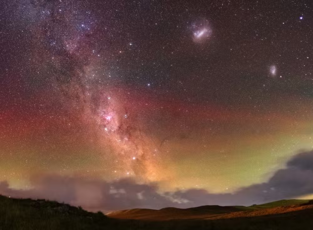 Um dia depois, surge a pintura no céu de Cambará do Sul. E além da hipótese de aurora, o fenômeno pode ter sido um “airglow”, um brilho produzido por colisões de átomos e moléculas na alta atmosfera após eventos geomagnéticos intensos.